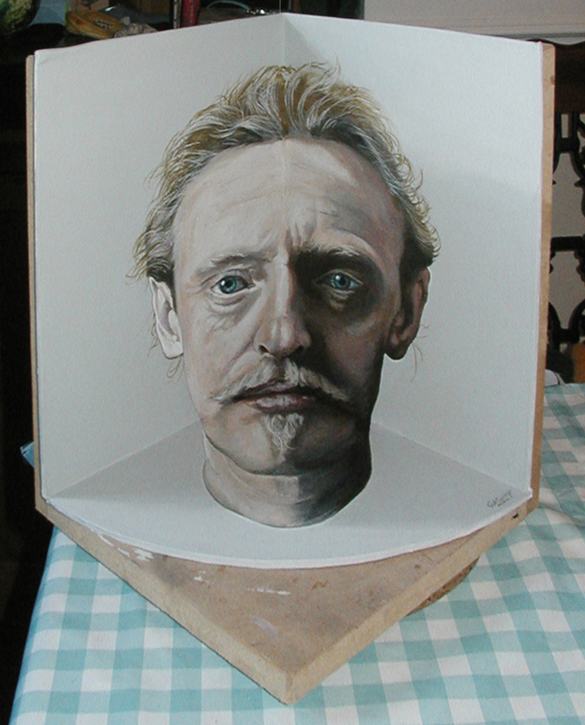 an experimental self-portrait, life size on primed board