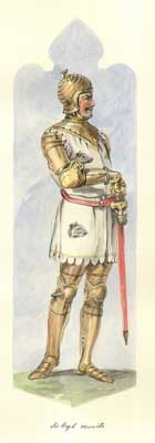 It shows Sir Hugh Morville, one of the knights involved in the martyrdom of St. Thomas a Beckett.